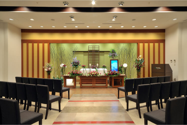 やわらぎ新川別邸は、ご家族と愛する故人様とが過ごす時間を大切にするための、温もりのある式場です。 既成の祭壇を置かず空間そのものを祭壇と考える自由型です。